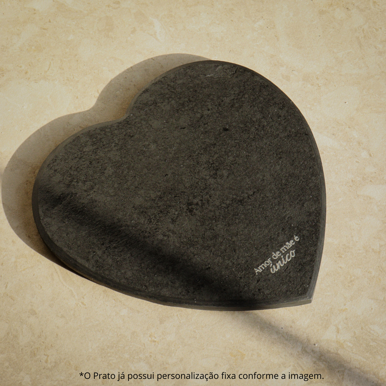 Em formato de coração e 100% natural, o Especial Prato Coração já vem gravado com uma frase fixa. Esse modelo contém a gravação "Amor de mãe é único". Para presentear aquelas que nos impulsionam a sempre ir em frente.