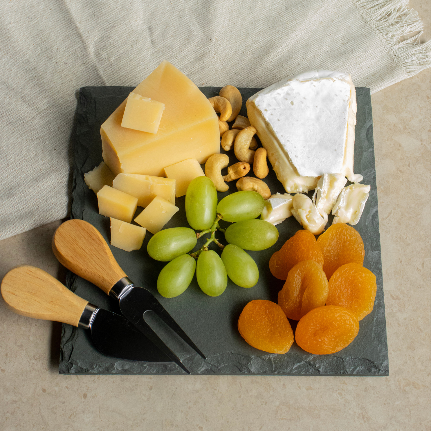 O Prato Quadrado 20x20cm na cor Grey traz aquele charme sofisticado que transforma qualquer aperitivo em experiência. Acompanha 1 Faca e 1 Garfo com cabo de Madeira, perfeitos para montar e servir queijos, frios e petiscos com praticidade e estilo.