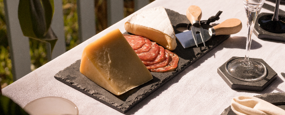 A Ardósia traz um toque elegante e moderno à sua cozinha. Seu visual sóbrio e sofisticado não apenas serve para cortar, mas também pode ser utilizada como uma peça de apresentação para queijos, frios ou até mesmo para servir pratos quentes.