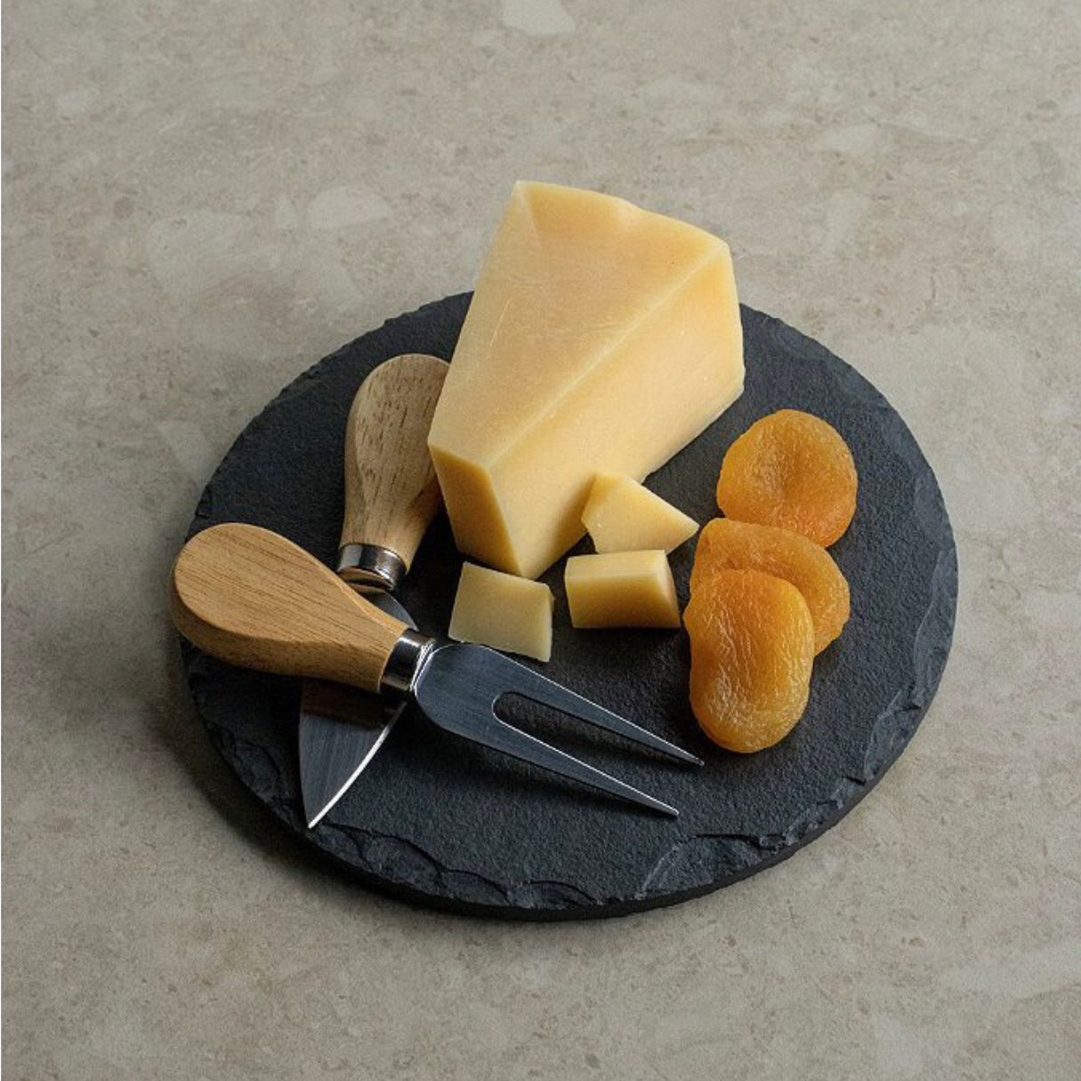 O Prato Redondo de 18cm traz aquele charme sofisticado que transforma qualquer aperitivo em experiência. Acompanha 1 Faca e 1 Garfo com cabo de Madeira, perfeitos para montar e servir queijos, frios e petiscos com praticidade e estilo.