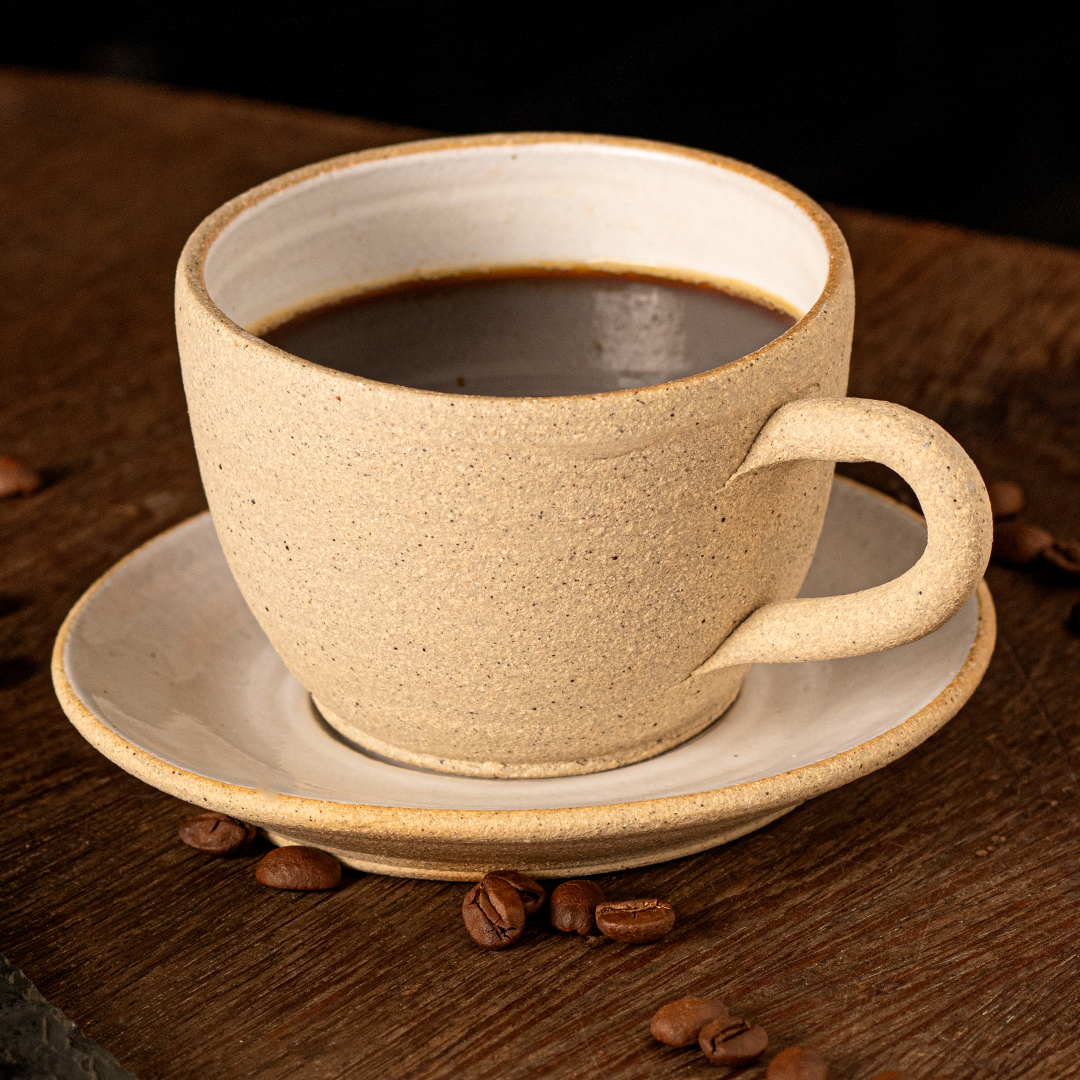 Ao esmaltar a Cerâmica apenas internamente, criamos uma sensação tátil única. Em cada toque na peça, é possível se conectar com o artesão, com a terra, com a tradição ancestral de moldar a argila e transformá-la no belo. É uma experiência que estimula todos os sentidos, não apenas o tato, mas também o olfato e a visão.